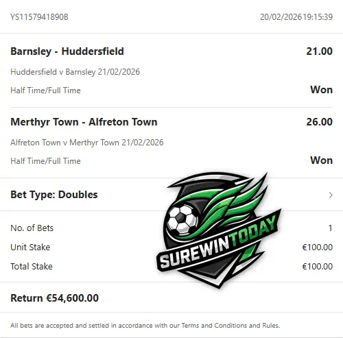 Double HT FT of 21.02.2026 + BET 365 Proof